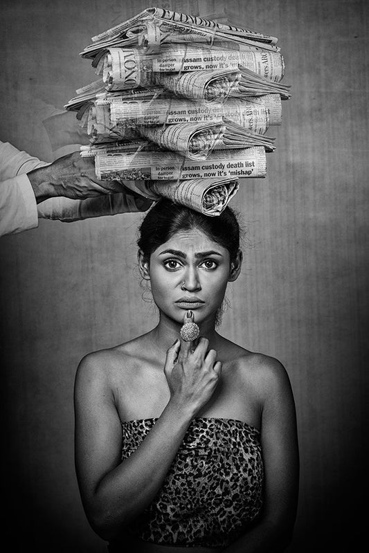 Pressure Of Media Black Ornate Wood Framed Art Print with Double Matting by Bhattacharyya, Partha