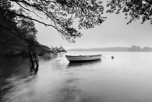 Moonlit Mooring White Modern Wood Framed Art Print with Double Matting by Anonymous