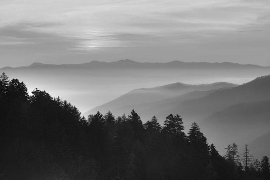 Smoky Mountains White Modern Wood Framed Art Print with Double Matting by Anonymous