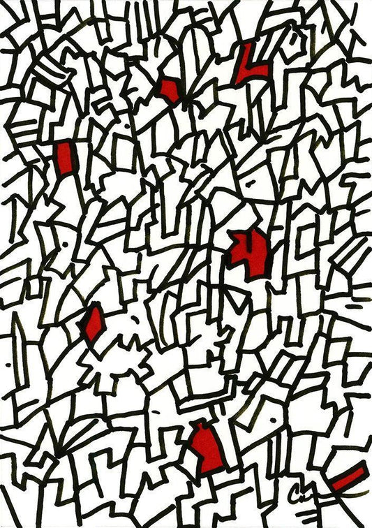 Abstract Line Drawing II White Modern Wood Framed Art Print with Double Matting by Carroccio, Lisa
