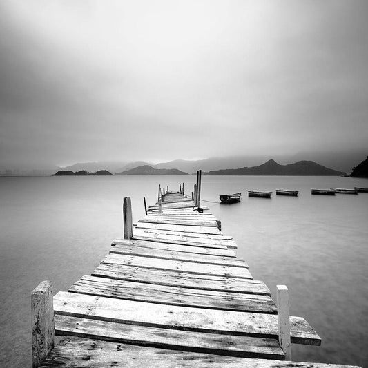 Pier at the Autumn River White Modern Wood Framed Art Print with Double Matting by Cho Pan, Leung