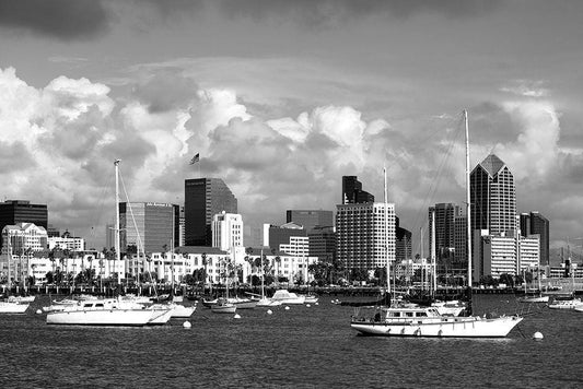 Cityscape San Diego California White Modern Wood Framed Art Print with Double Matting by Highsmith, Carol