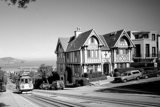 Cable car ascends hill San Francisco California White Modern Wood Framed Art Print with Double Matting by Highsmith, Carol