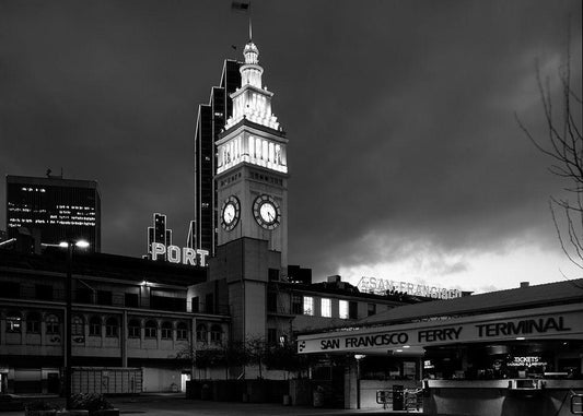 Ferry Building at night San Francisco California White Modern Wood Framed Art Print with Double Matting by Highsmith, Carol