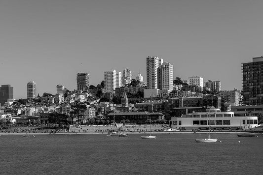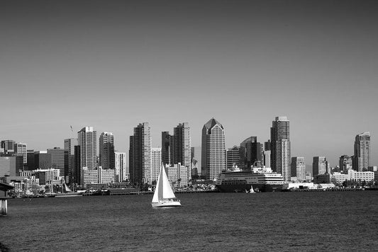 Skyline of San Diego California Black and White White Modern Wood Framed Art Print with Double Matting by Highsmith, Carol