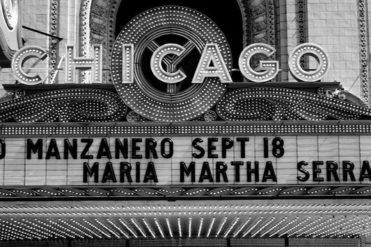 Marquee of the historic Chicago Theater Chicago Illinois White Modern Wood Framed Art Print with Double Matting by Highsmith, Carol