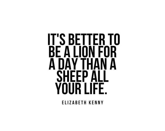 Elizabeth Kenny Quote: A Lion for a Day White Modern Wood Framed Art Print with Double Matting by ArtsyQuotes