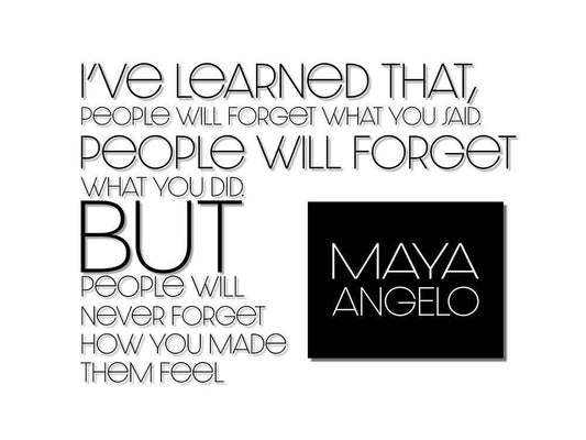 Maya Angelou Quote: How You Made Them Feel White Modern Wood Framed Art Print with Double Matting by ArtsyQuotes