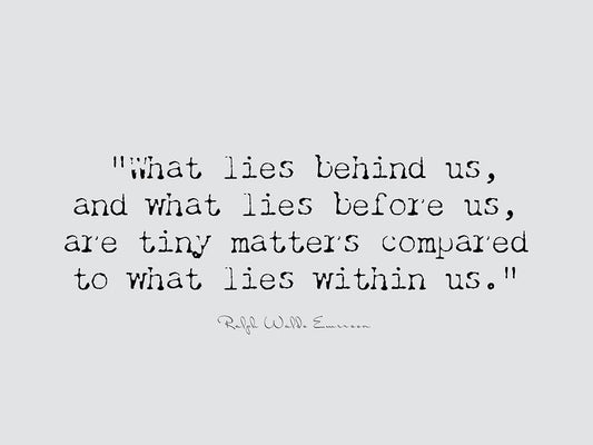 Ralph Waldo Emerson Quote: Lies Within Us White Modern Wood Framed Art Print with Double Matting by ArtsyQuotes