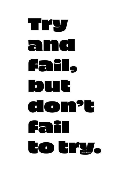 Stephen Kaggwa Quote: Try and Fail White Modern Wood Framed Art Print with Double Matting by ArtsyQuotes
