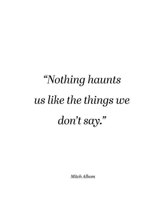 Mitch Albom Quote: Things We Dont Say White Modern Wood Framed Art Print with Double Matting by ArtsyQuotes