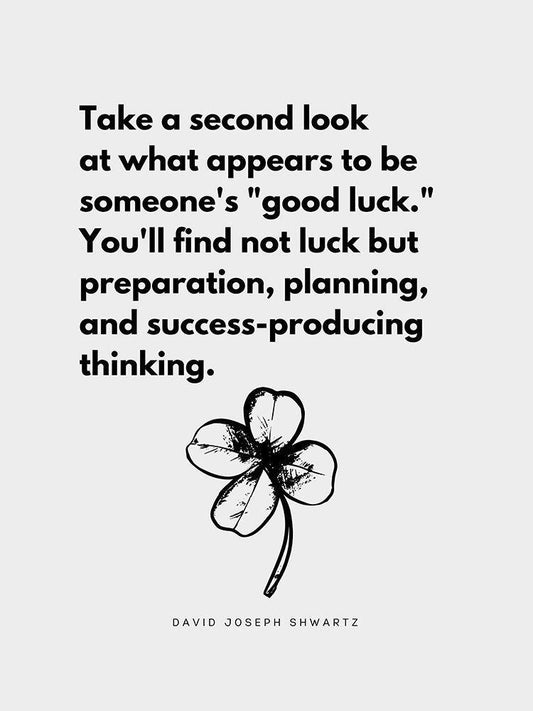 David Joseph Shwartz Quote: Good Luck White Modern Wood Framed Art Print with Double Matting by ArtsyQuotes