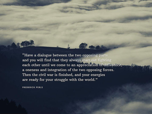 Fritz Perls Quote: Two Opposing Parts White Modern Wood Framed Art Print with Double Matting by ArtsyQuotes