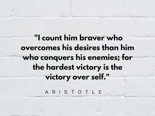 Aristotle Quote: Victory White Modern Wood Framed Art Print with Double Matting by ArtsyQuotes