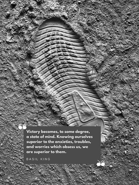 Basil King Quote: Victory White Modern Wood Framed Art Print with Double Matting by ArtsyQuotes
