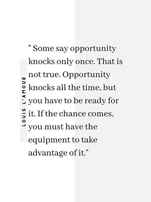 Louis LAmour Quote: Opportunity Knocks White Modern Wood Framed Art Print with Double Matting by ArtsyQuotes