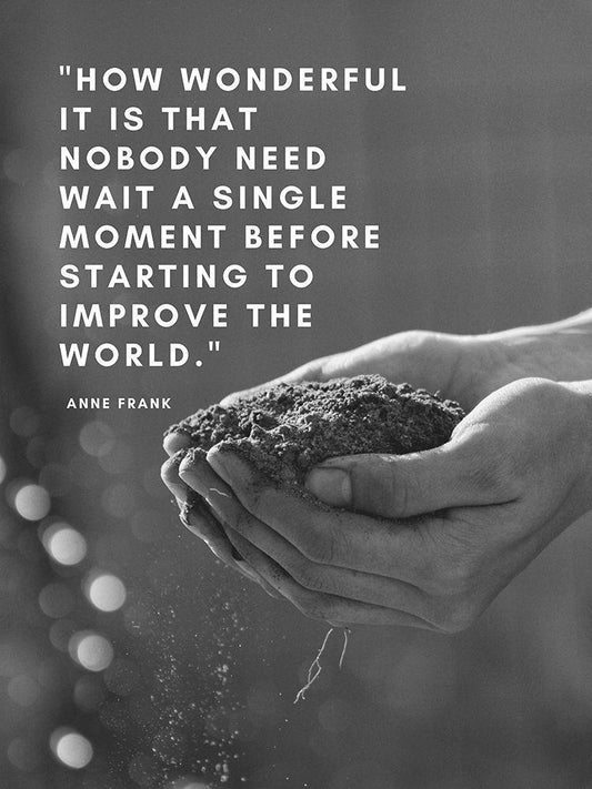 Anne Frank Quote: Improve the World White Modern Wood Framed Art Print with Double Matting by ArtsyQuotes