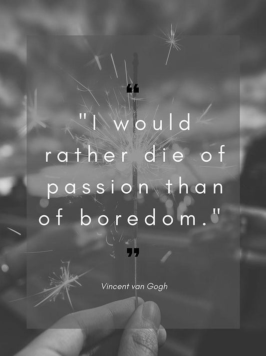 Vincent Van Gogh Quote: Die of Passion White Modern Wood Framed Art Print with Double Matting by ArtsyQuotes