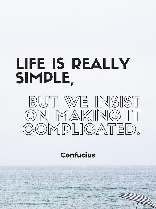 Confucius Quote: Life is Really Simple White Modern Wood Framed Art Print with Double Matting by ArtsyQuotes