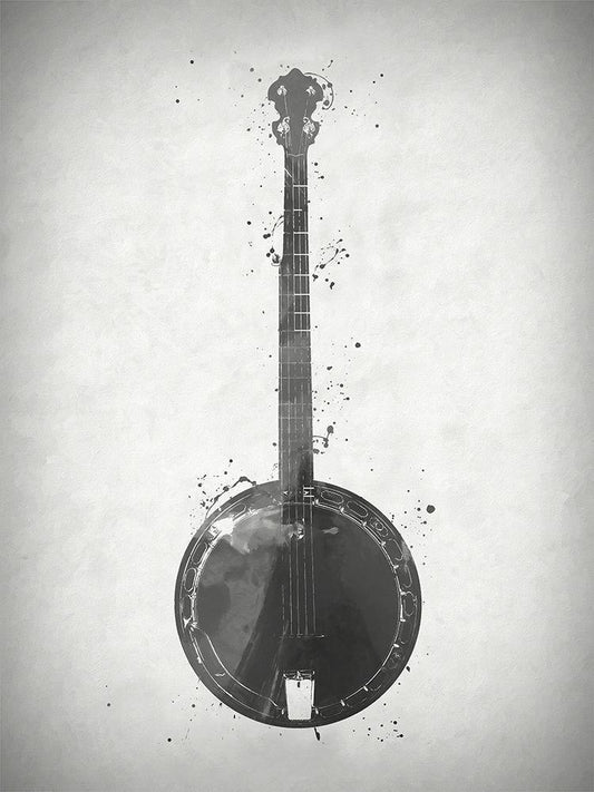 Black and White Banjo White Modern Wood Framed Art Print with Double Matting by Sproul, Dan