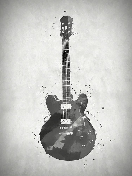 Black and White Guitar White Modern Wood Framed Art Print with Double Matting by Sproul, Dan