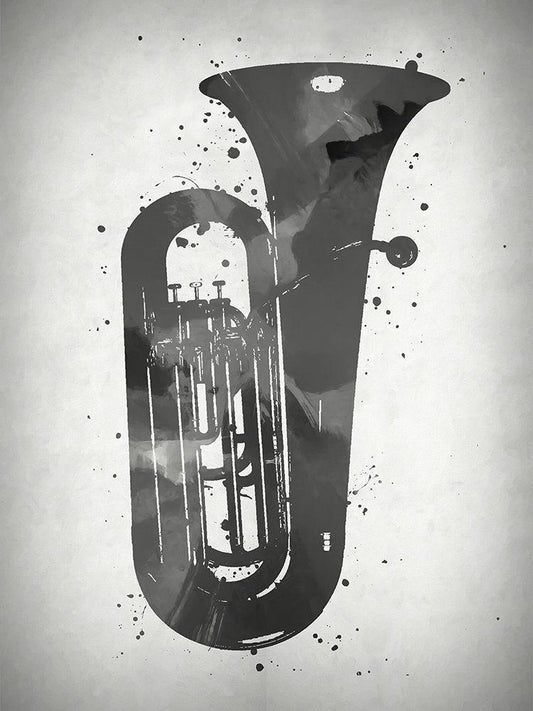 Black and White Tuba White Modern Wood Framed Art Print with Double Matting by Sproul, Dan