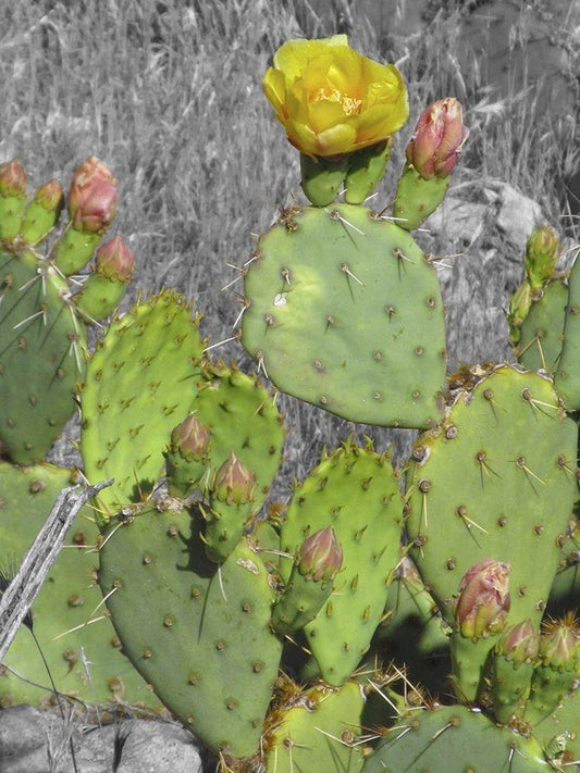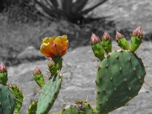 Cactus Flower BandW I A White Modern Wood Framed Art Print with Double Matting by Popcorn