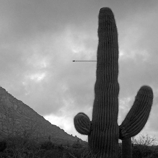 Saguaro Arrow BandW White Modern Wood Framed Art Print with Double Matting by Popcorn