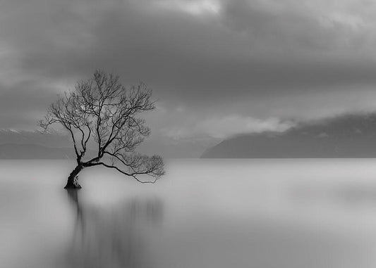 Larbre du lac White Modern Wood Framed Art Print with Double Matting by Braun Studio