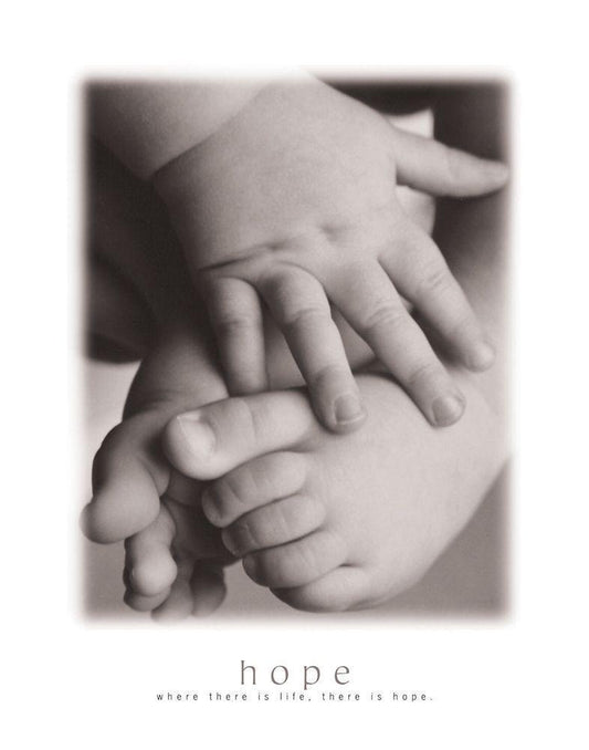 Hope - Infant Hands White Modern Wood Framed Art Print with Double Matting by Frontline