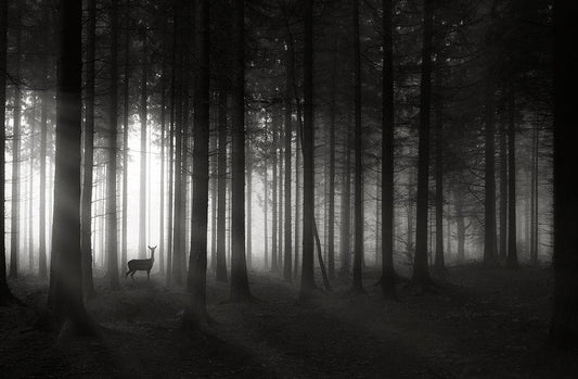 Deer`S Morning Black Ornate Wood Framed Art Print with Double Matting by Hessel, Christoph