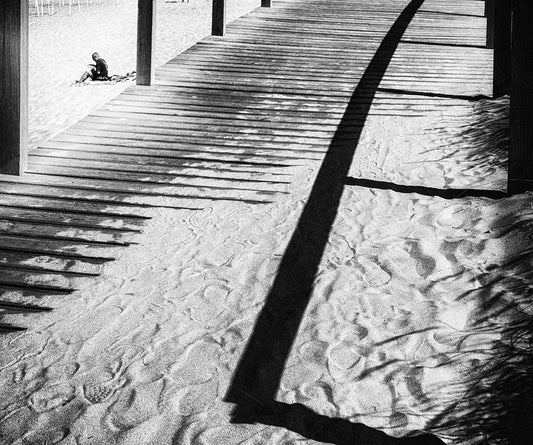 The Beach Hut Black Ornate Wood Framed Art Print with Double Matting by Elgar, Peter