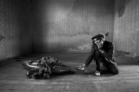 I Can Not Open The Door. Black Ornate Wood Framed Art Print with Double Matting by Inazio Kuesta, Joxe