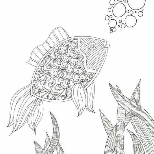 Fish Bubbles Gold Ornate Wood Framed Art Print with Double Matting by Varacek, Pam