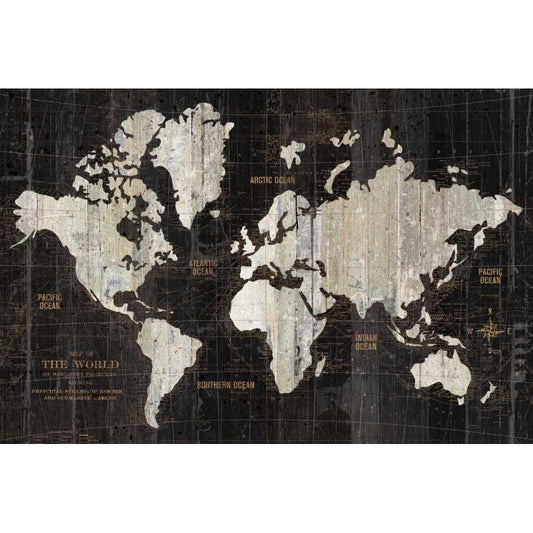 Map of the World Industrial No Words Gold Ornate Wood Framed Art Print with Double Matting by Schlabach, Sue