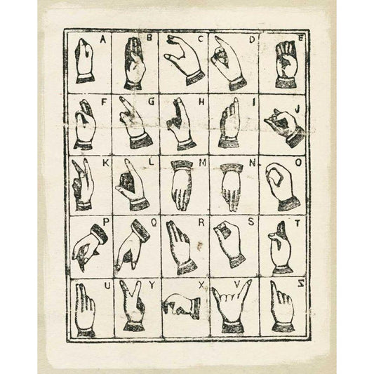 Vintage Sign Language Alphabet Gold Ornate Wood Framed Art Print with Double Matting by Wild Apple Portfolio