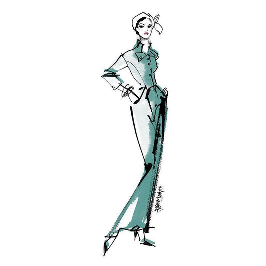 Fifties Fashion III v2 Green Gold Ornate Wood Framed Art Print with Double Matting by Tavoletti, Anne