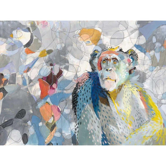 Abstract Chimpanzee Gold Ornate Wood Framed Art Print with Double Matting by Nai, Danhui