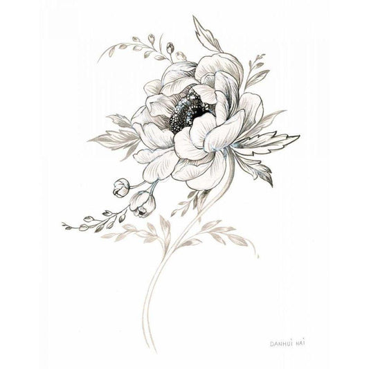 Sketchbook Garden IX BW Gold Ornate Wood Framed Art Print with Double Matting by Nai, Danhui