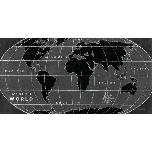 Chalkboard Map of the World Gold Ornate Wood Framed Art Print with Double Matting by Schlabach, Sue