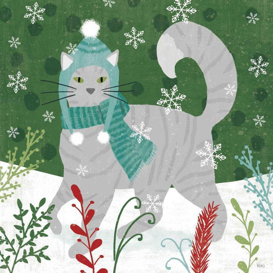 Purrfect Holiday V Gold Ornate Wood Framed Art Print with Double Matting by Charron, Veronique