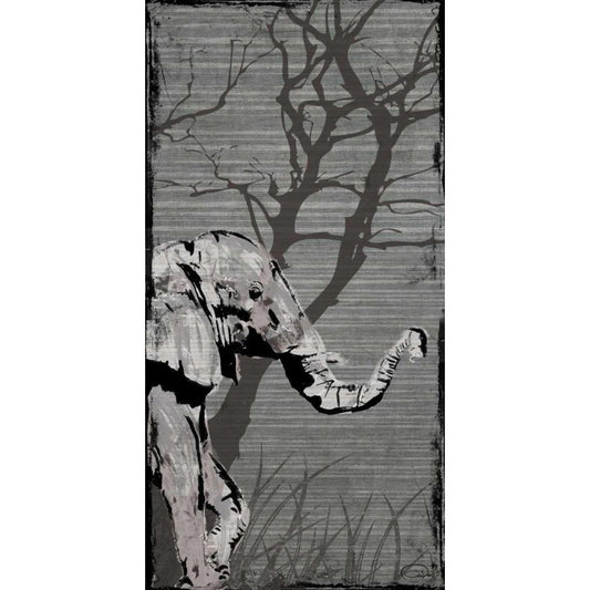 Gery Elephant Gold Ornate Wood Framed Art Print with Double Matting by OnRei