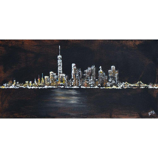 Abstract NYC Skyline Gold Ornate Wood Framed Art Print with Double Matting by Jenner, Roya