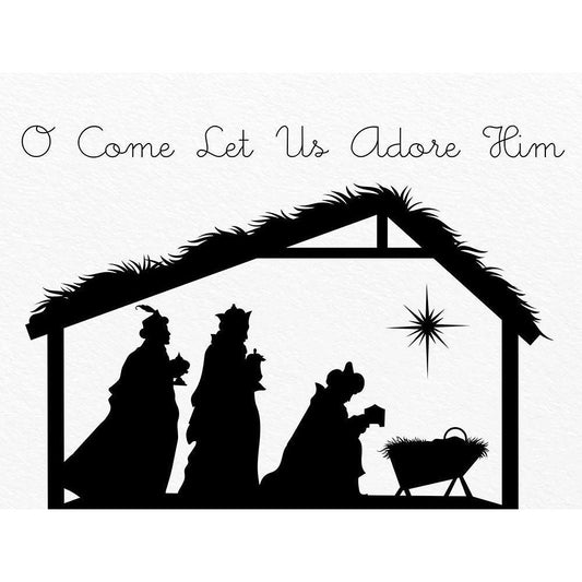 O Come Let Us Adore Him Gold Ornate Wood Framed Art Print with Double Matting by Allen, Kimberly