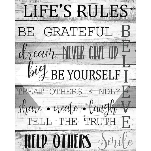 Lifes Rules Grey Gold Ornate Wood Framed Art Print with Double Matting by Kimberly, Allen
