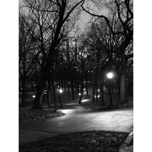Central Park Night Stroll Gold Ornate Wood Framed Art Print with Double Matting by Pica, Jeff