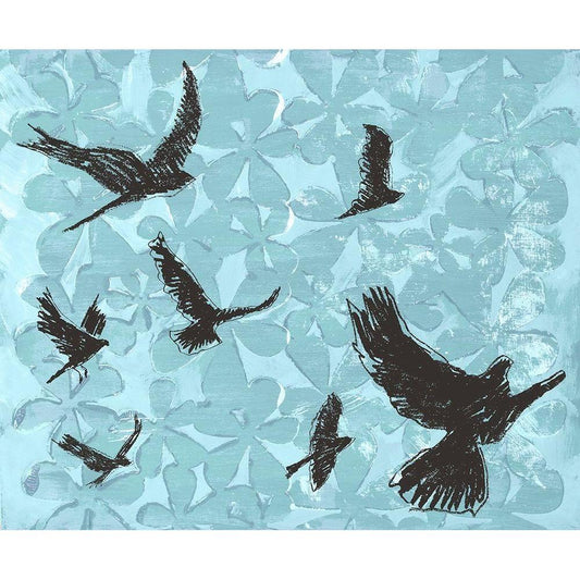 Birds on Light Blue Gold Ornate Wood Framed Art Print with Double Matting by St Hilaire, Elizabeth