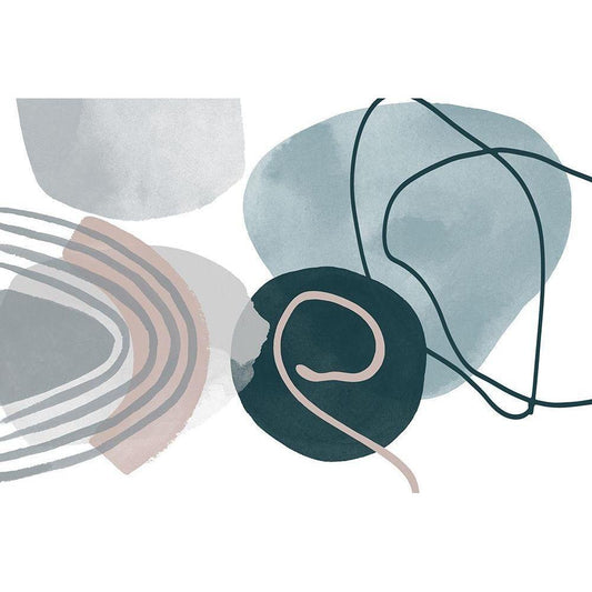 Minimalism Blue Shapes Gold Ornate Wood Framed Art Print with Double Matting by Orlov, Irena