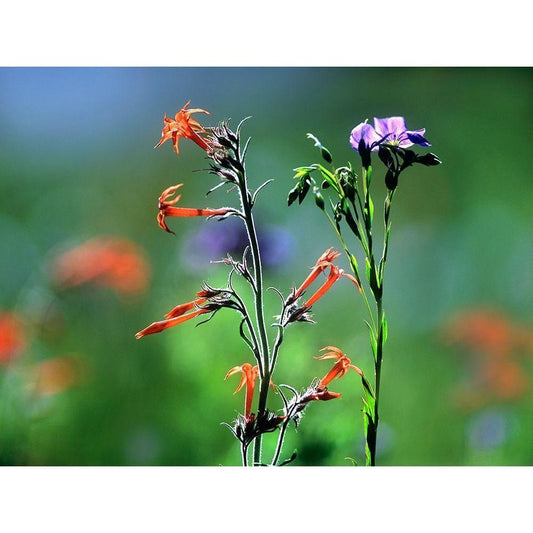 Scarlet Gilia and Blue Flax Gold Ornate Wood Framed Art Print with Double Matting by Fitzharris, Tim