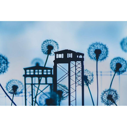 Blue dandelions Gold Ornate Wood Framed Art Print with Double Matting by Blagoeva, Ivelina